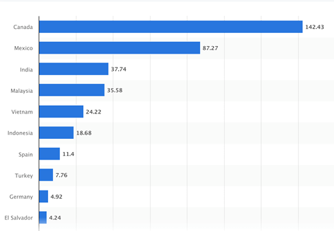 - International Waste Export Destinations: Malaysia, India, Mexico, Canada